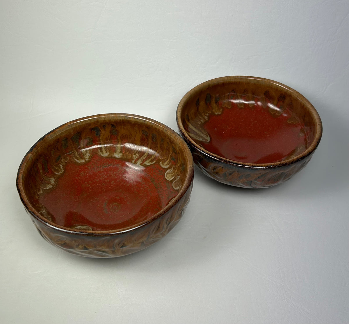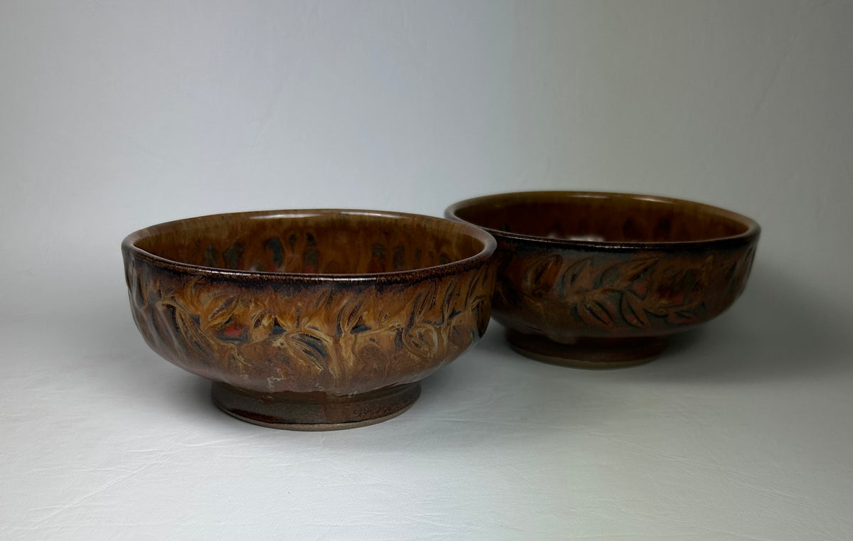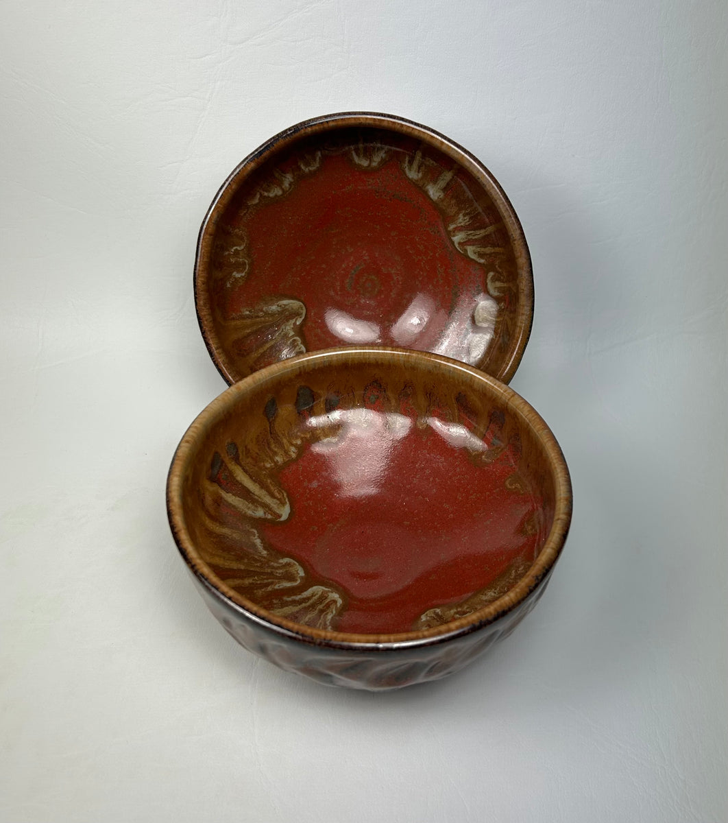 2 small bowls ideal for ice cream or fruit and yogurt or anything you want to eat a small portion of. Textured rim dark stoneware. 11.5 cm w x 5.5 cm t each