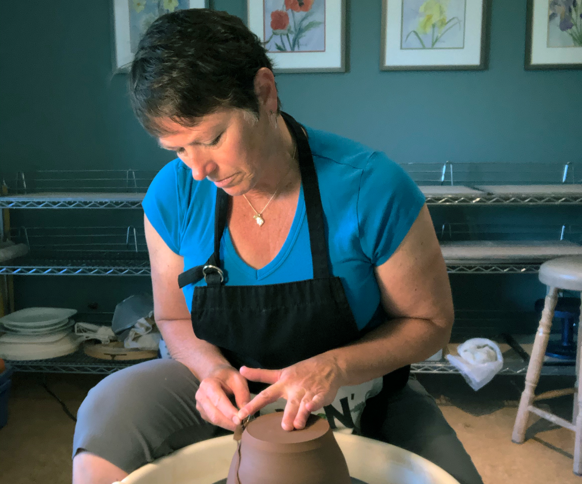My name is Paula Schneider and I am a potter living in the Okanagan Valley of British Columbia. I create mainly functional ware that is meant to be used and enjoyed. My pieces are mainly thrown on the wheel and I try to incorporate interesting aesthetic through the interaction between texture and glaze. I use techniques such as sgraffito, mishima, and inlay to depict images that are inspired by the things that I love about the Okanagan Valley. You can follow me on Instagram @hairofthedogpottery